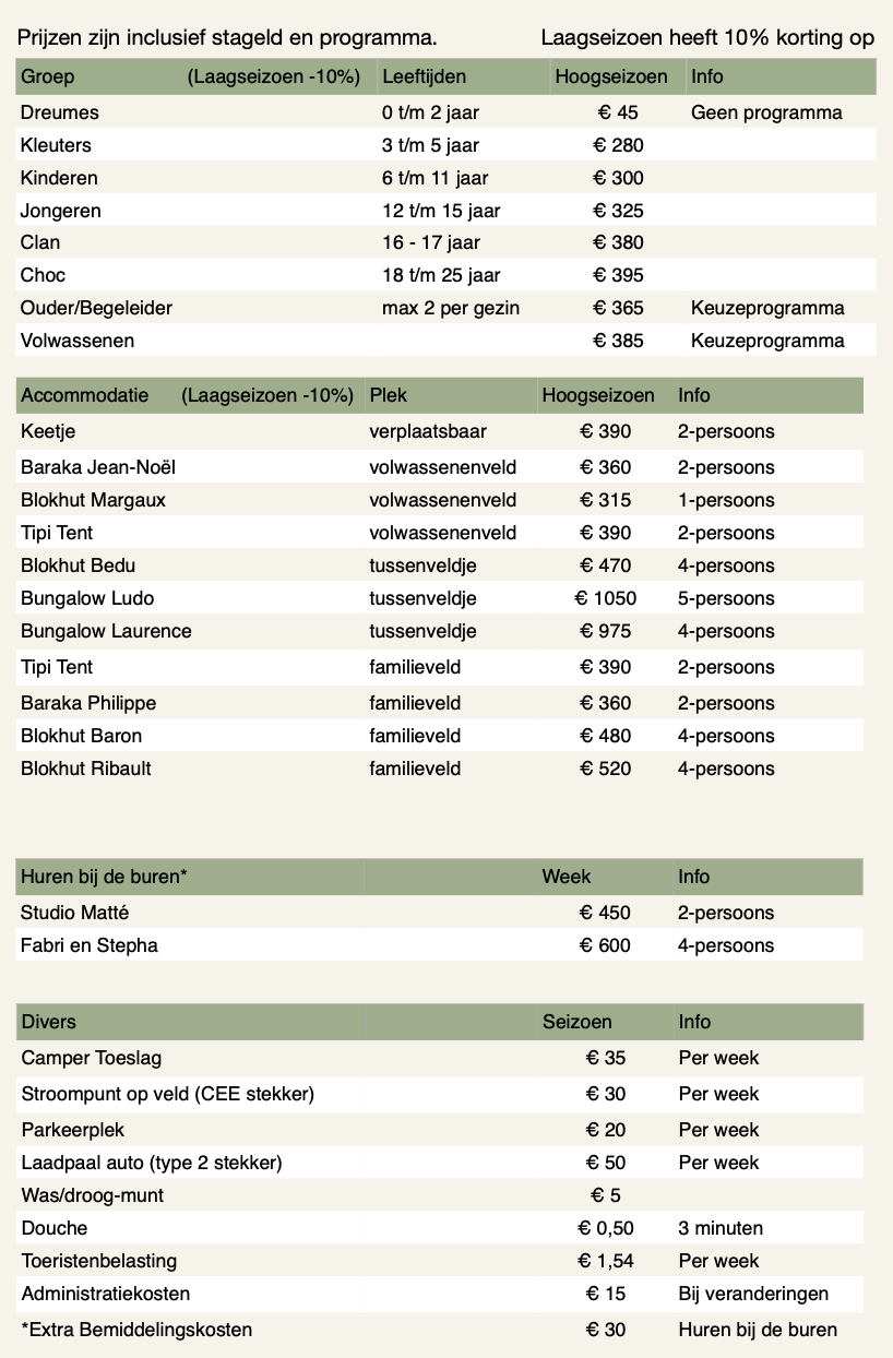 Prijzen/voorwaarden